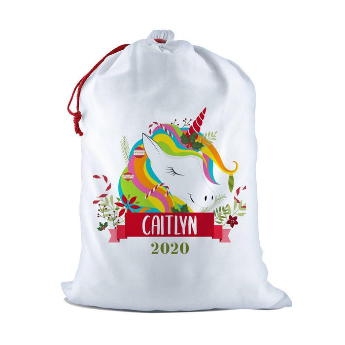 Colourful Unicorn White Santa Sack